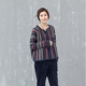 麦素秋季新款纯棉条纹文艺宽松口袋圆领女针织开衫斯琴风格
