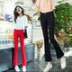 2017春夏季新款中高腰直筒裤休闲裤女裤子喇叭长裤韩版显瘦微喇裤