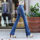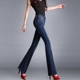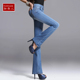 春季新款高腰弹力微喇牛仔裤女中年大码妈妈小喇叭长裤