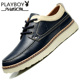 花花公子男鞋春季潮鞋韩版百搭真皮系带皮鞋青年英伦休4397-LGPD