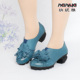 特价清仓复古休闲文艺女鞋子 手工真皮防水台女士粗跟花朵单鞋
