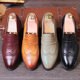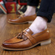 春季英伦复古套脚尖头休闲皮鞋男单鞋欧美布洛克雕花流苏透气男鞋