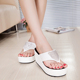 女夏拖鞋外穿坡跟厚底女拖鞋镶钻松糕底凉拖防滑沙滩鞋女人字拖