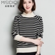 17春秋女装新款100%羊毛衫女纯羊毛保暖黑白条纹半高领修身毛衣女