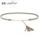 手工编织头层牛皮皮带细女士流苏装饰双圈真皮皮带打结女细皮带韩