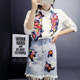夏装新款花朵刺绣连衣裙衬衫休闲气质流苏牛仔包臀短裙套装两件套