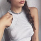 欧美范性感紧身小高领针织背心窄肩吊带无袖挂脖短款高腰T恤