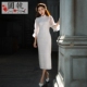 固执2017春季新款复古修身盘扣蕾丝改良旗袍中长七分灯笼袖连衣裙