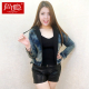 糖糖大码女装尚瘾胖mm秋装新款显瘦假两件大码连帽牛仔外套1288
