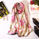 礼盒装 真丝丝巾女 春秋冬季超大荷花图案桑蚕丝丝巾纱巾披肩