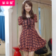 妮亚曼夏装新款女装胸前系带修身显瘦甜美短袖雪纺连衣裙女夏