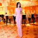 夏装新款时尚套装性感V领裹胸系带露腰短袖雪纺衫喇叭阔腿长裤女
