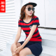 短袖运动套装女夏2017新款时尚修身条纹防走光网球裙圆领显瘦套裙