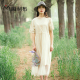 Maliboo/麻利布2017夏季新款网纱中长款连衣裙女蕾丝雪纺裙假两件