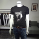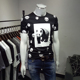 欧洲站夏季男士圆领短袖t时尚印花丝光纯棉T恤韩版修身半袖打底衫