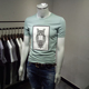 2017年夏季短袖T恤韩版修身圆领3D猫头鹰印花半袖t恤男士潮打底衫