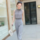 女装夏天高腰立领无袖连体裤修身显瘦韩版OL气质阔脚裤连衣裤潮女