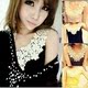 包邮 春装花朵雏菊花瓣 蕾丝钩花领 镂空拼接 背心打底衫 棉