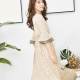 2017夏新款女装印花遮肚子雪纺衫上衣超仙七分袖荷叶边小碎花小衫