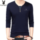 花花公子春季青年男士圆领长袖t恤男韩版薄款体恤潮纯色打底衫T恤
