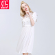 煊妮诗2017欧美春夏新款蕾丝雪纺连衣裙百褶连衣裙名媛显瘦打底裙
