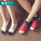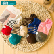 5双装 袜子女纯棉拼色宽条个性短袜百搭时尚船袜防臭吸汗女袜子