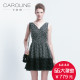 CAROLINE卡洛琳甜美时尚收腰显瘦V领无袖连衣裙G6201602