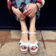 夏季松糕底脚踝绑带方头星星厚底高跟真皮鱼嘴大码坡跟凉鞋女白色