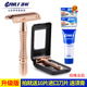 百利经典升级版双面手动刮胡刀老式剃须刀架带盒送进口不锈钢刀片