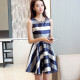 2017夏季新款女装条纹无袖连衣裙时尚气质修身蓬蓬裙百搭A字短裙