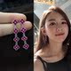 925银针锆石红刚玉宝石小花四叶草流苏耳环女耳坠秀美清新包邮