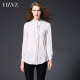 HZVZ欧美简约2017春季新款褶皱休闲立领打底中长款雪纺长袖衬衫女