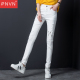 白色破洞牛仔裤女长裤小脚裤韩版高腰修身显瘦铅笔裤2017春装新款