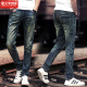 酷艾李维斯复古牛仔裤男士破洞修身小脚乞丐裤韩版刮烂长裤潮夏季
