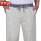 夏季中年男士亚麻裤薄款休闲裤青年时尚修身中腰棉麻裤子直筒男裤