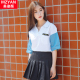 学院风2017夏季新款少女韩版拼接牛仔衬衫中学生修身百搭短袖衬衣