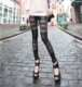 新款小脚仿皮裤性感蕾丝拼接透肉玫瑰花拼接外穿九分打底裤夏薄