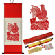 九斗云 蔚县传统精装十二生肖福鸡年特色剪纸卷轴画轴英文说明