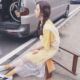 夏季港味韩国ulzzang连衣裙两件套喇叭袖纯色五分袖公主甜美短裙