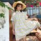 春季港味韩国ulzzang娃娃裙A型单件七分袖圆领格子A字裙甜美短裙