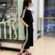 夏季韩国ulzzang原宿风短袖拼色通勤中长款圆领棉宽松拼接蕾丝T恤