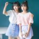 夏季韩国ulzzang原宿风超短裙两件套印花拼接短袖甜美圆领连衣裙