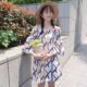 春季韩国ulzzang原宿风连衣裙V领长袖A字裙两件套甜美碎花超短裙