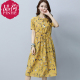 棉麻连衣裙女夏短袖中长款收腰显瘦棉布长裙休闲夏天新款碎花裙子