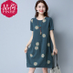 棉麻连衣裙女夏2017新款短袖中长款修身显瘦休闲碎花夏天棉布裙子