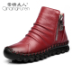 冬季新款保暖妈妈棉鞋真皮平跟短靴中老年人短筒妇女靴子平底防滑