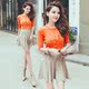 BOSSY LADY2016时尚竖纹中袖针织上衣显瘦半身裙A字裙两件套装女