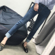 17春季韩版水洗抓痕磨白拼色毛边裤脚修身弹力显瘦小脚裤牛仔裤女