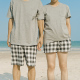 八月格桑 春夏纯棉情侣格子家居裤短裤男女纱布全棉睡裤休闲裤