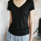 快乐家单口袋V领细绒棉弹力好搭纯色短袖T恤衫黑白女